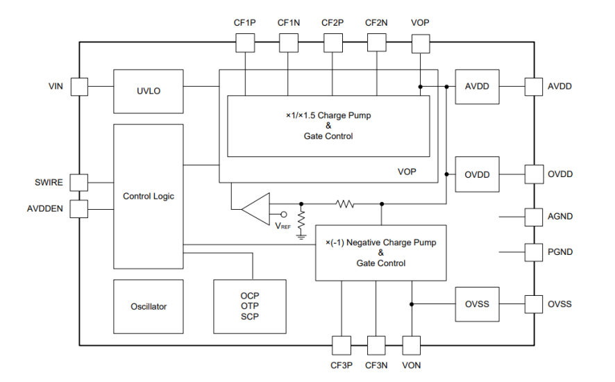 • OVSS:-2.8V~-3.5V(默認(rèn)輸出電壓:-3.3V±1%,0.1V步進(jìn))
